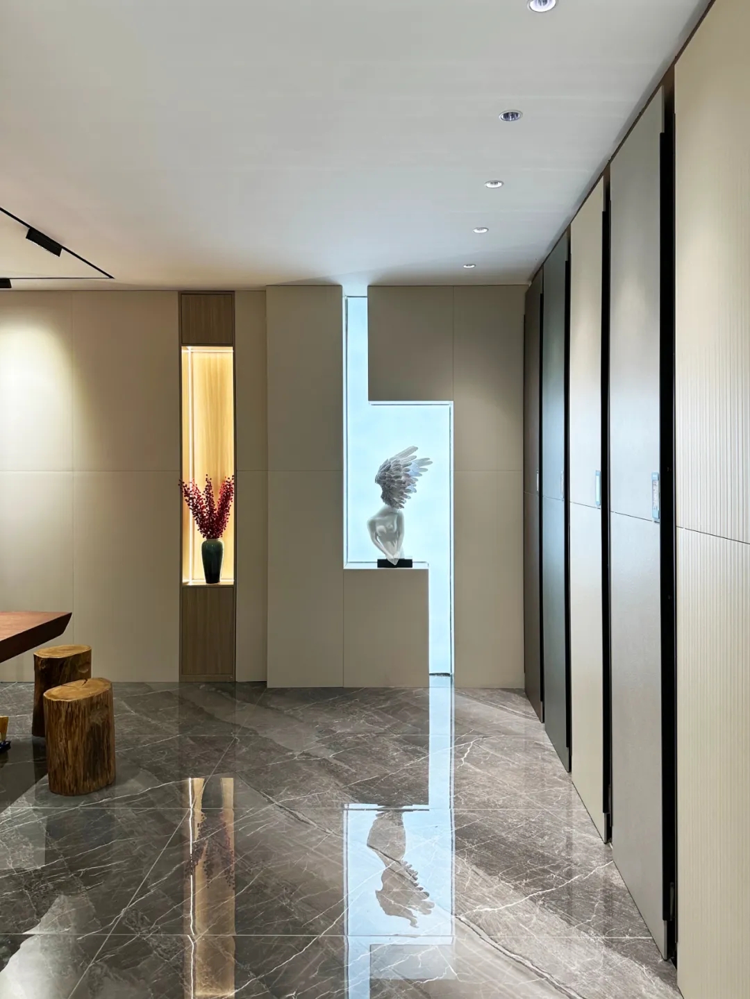 【羅曼締克定西·臻品館】相比于傳統(tǒng)的商業(yè)性展廳,更私密,更像是一個(gè)家的展示。設(shè)計(jì)融入情感,通過人性化思考,創(chuàng)造一個(gè)功能性完整的空間。在滿足功能需求的前提下,將空間、人及物品精心組合,用最洗練的筆畫,描繪出藝術(shù)格調(diào)的空間效果,這是設(shè)計(jì)藝術(shù)的最高境界。